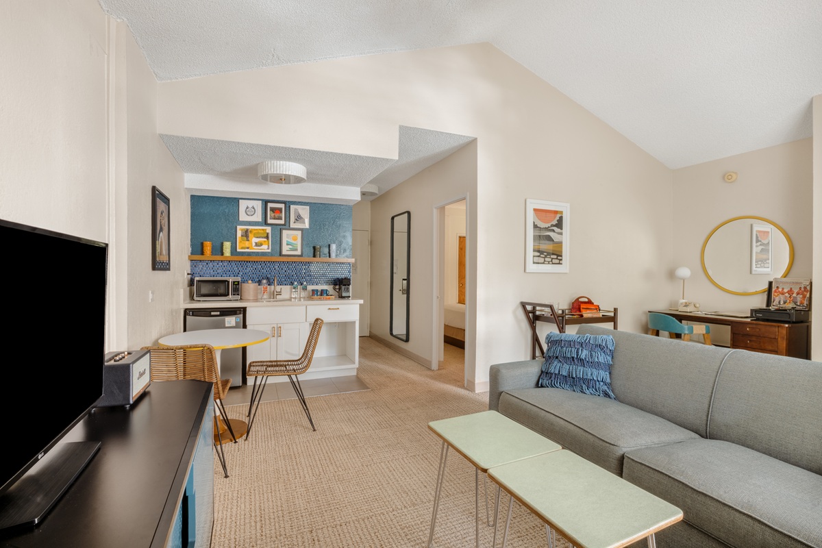 ワイキキ中心に位置し、ヴィンテージ感あふれるお洒落な隠れ家ホテル「ホワイト・サンズ・ホテル」。緑豊かなガーデンに囲まれたプールや、くつろぎのプライベートラナイで、のんびりとした時間をお過ごしいただけます。「オールド・ハワイ」の空気感に包まれたお部屋はすべて電子レンジ付き。ホテル内にあるレトロ風バーも是非お楽しみください。