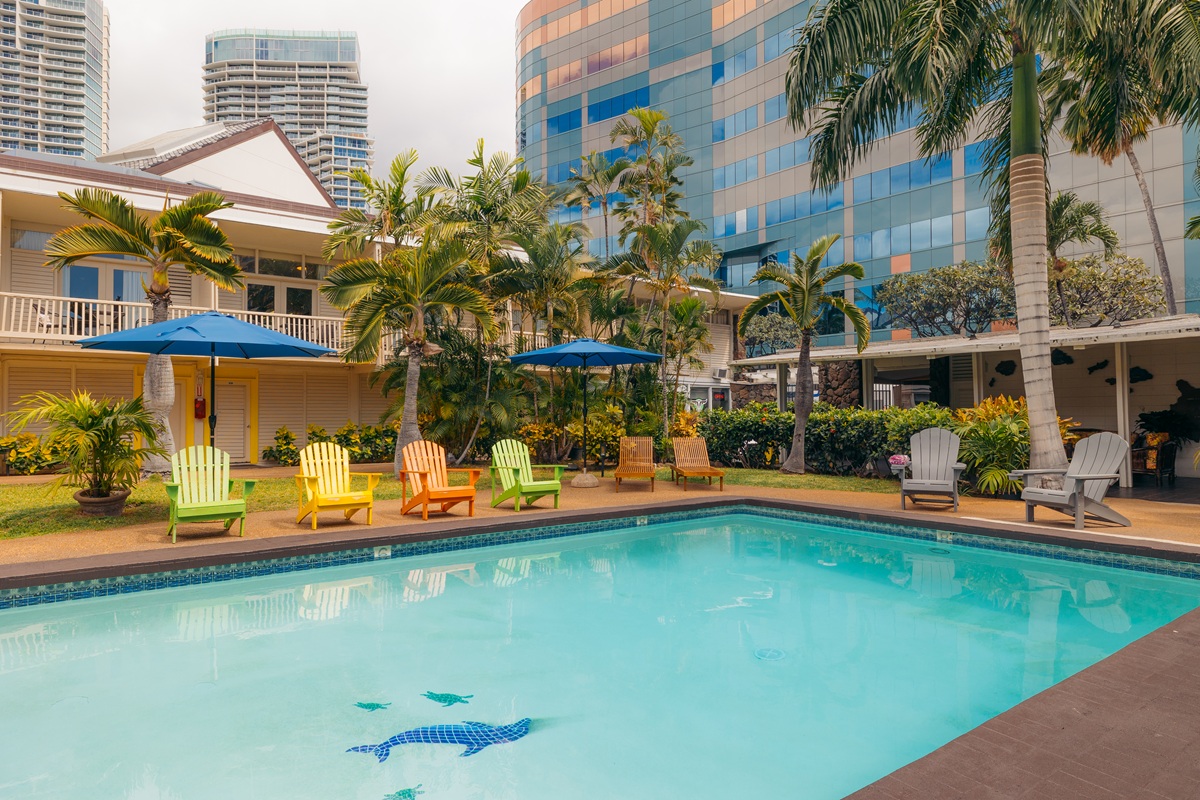 アラワイ運河に面した隠れ家的ホテルのウェイファインダー・ワイキキは、ワイキキビーチまで2ブロック、インターナショナルマーケットや今話題のワイキキマーケットへも徒歩圏内と大変便利なロケーションにあります。モダンなインテリアのお部屋はキングベッド1台もしくはダブルベッド2台。またプールサイドには広々としたキチネット付きスタジオタイプのお部屋もあり、長期滞在におすすめです。ホテル内にはフィットネスセンターや、トロピカル植物に囲まれたプールやジャクジーも完備。コーヒーショップやレストランはロコにも人気です。